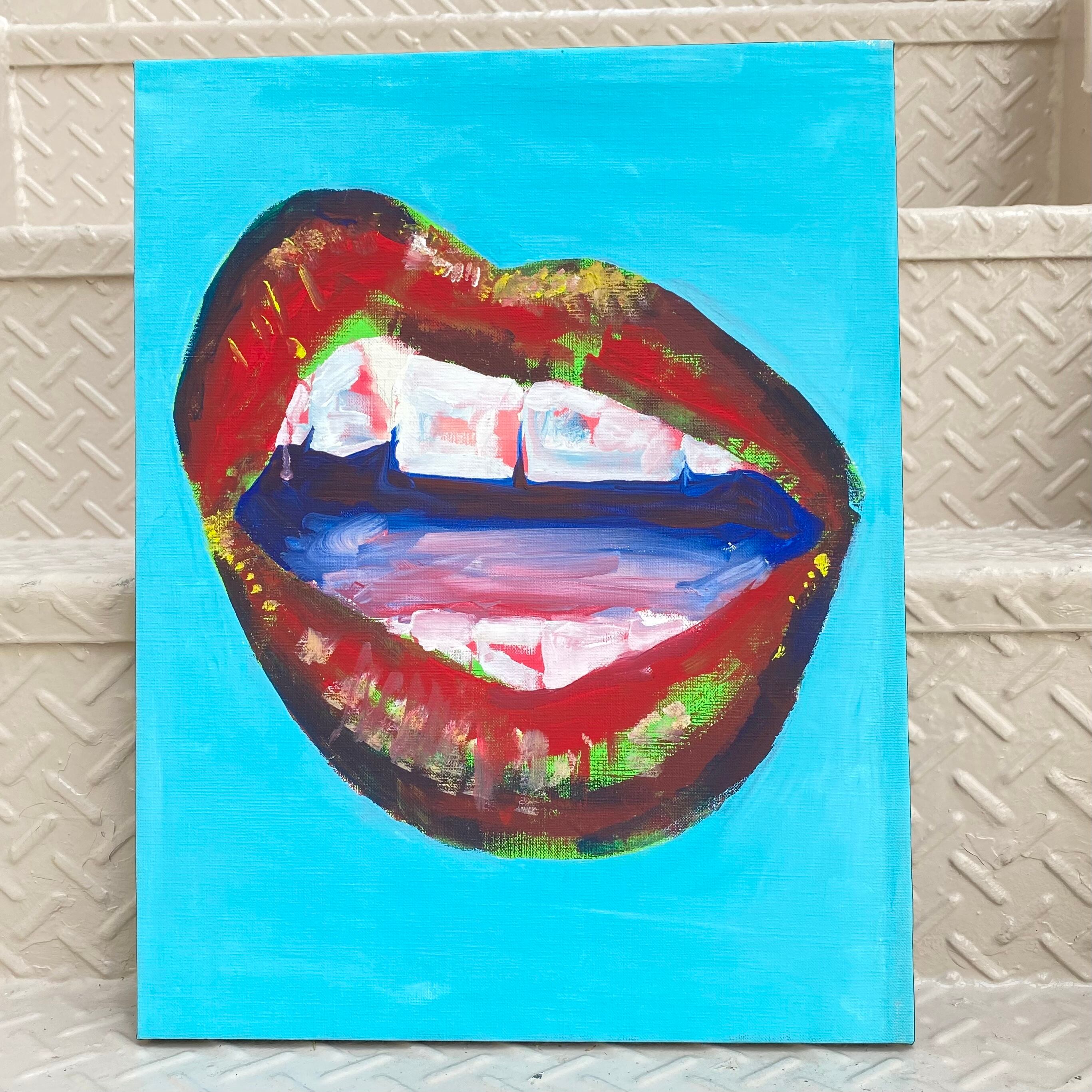 自身でデザインしたモチーフを描き、パネル張りをし、裏面の布は見えないようテープで処理しております。