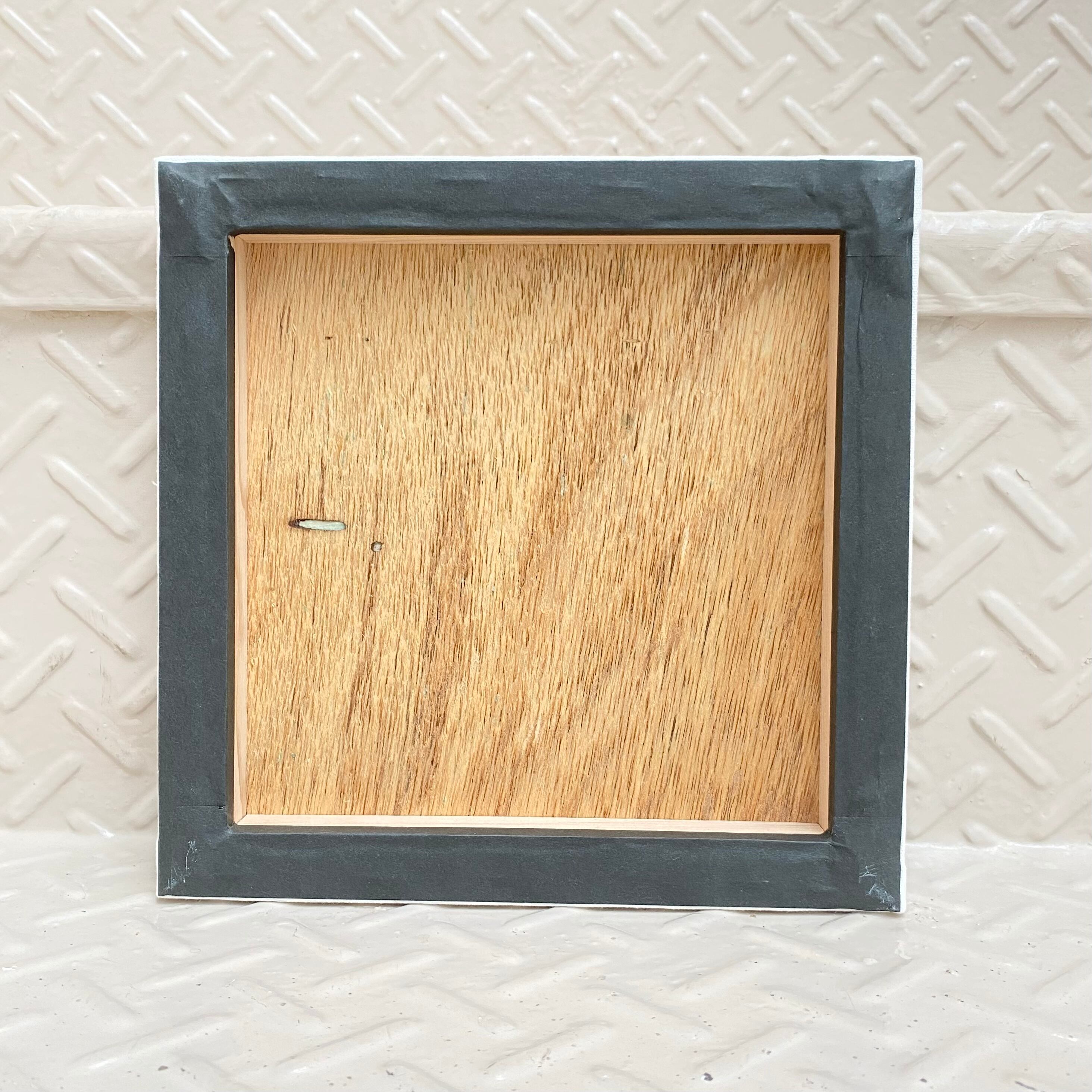 染めた布を木材パネルにパネル張りをし、裏側の布は見えないようテープで処理しております。