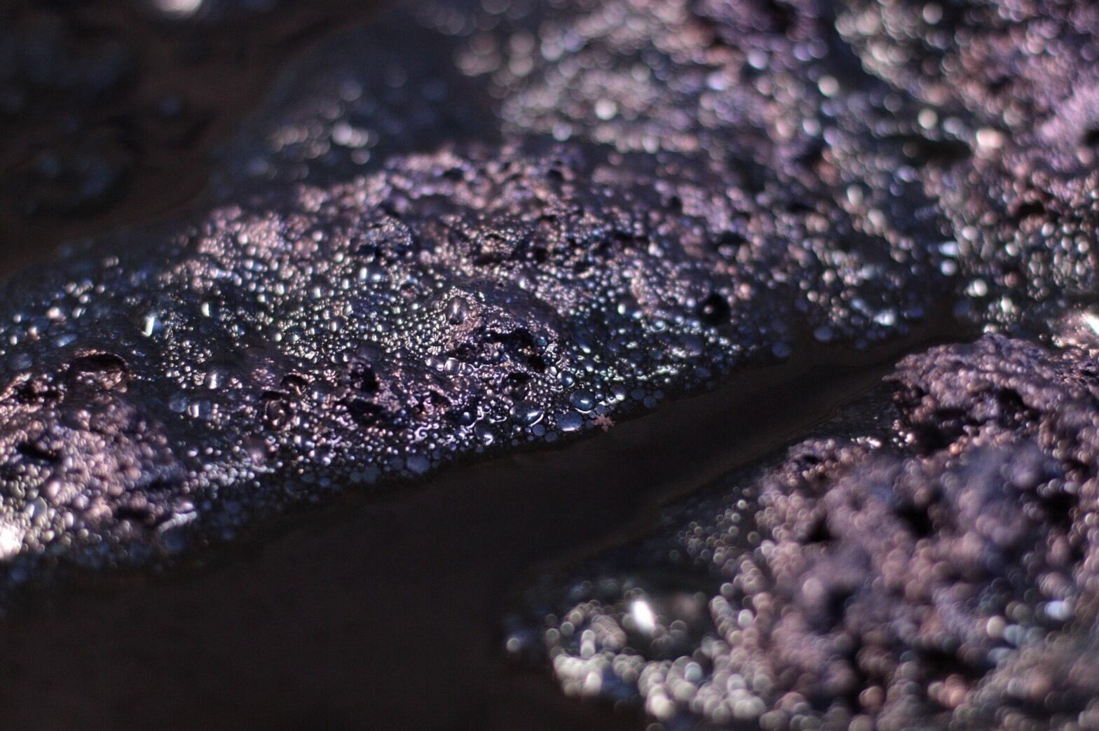 素材を藍瓶に浸しては汲み上げる作業を続けることにより、藍が空気と触れ合うことで酸化し、藍の色合いが生まれます。