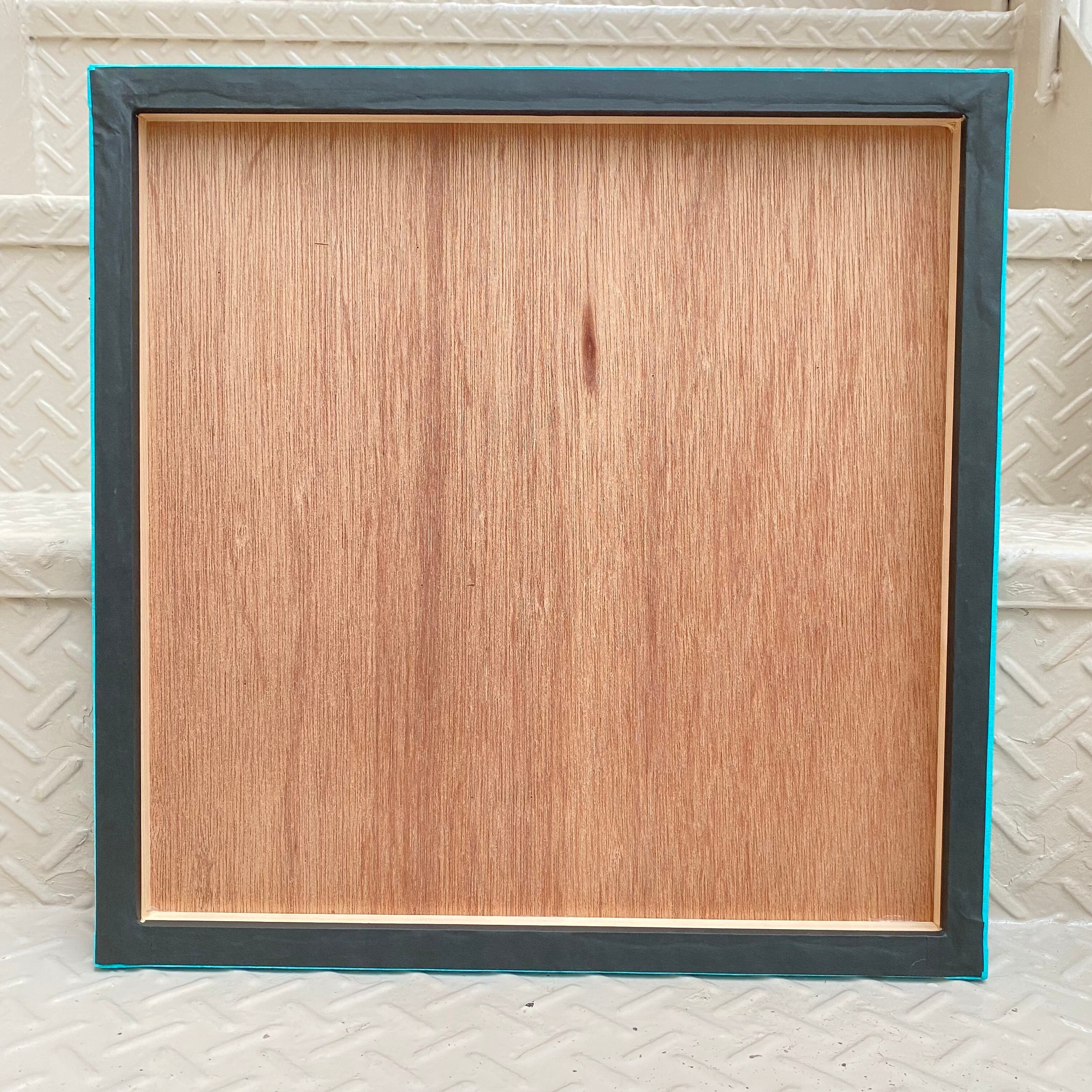 染めた布を木材パネルにパネル張りをし、裏側の布は見えないようテープで処理しております。