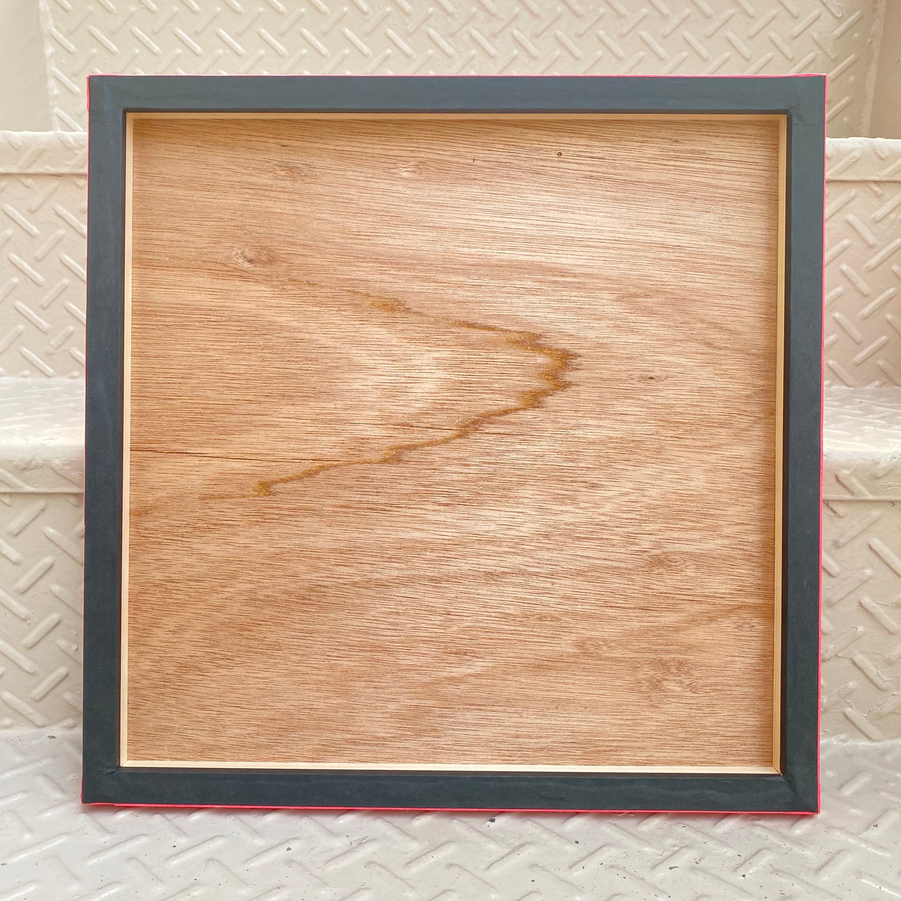 染めた布を木材パネルにパネル張りをし、裏側の布は見えないようテープで処理しております。